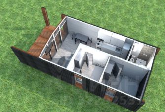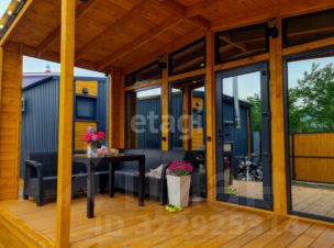 Продуманная планировка позволяет с комфортом разместить в доме 4 человека. Кухня гостиная с уютной зоной отдыха, санузлом и спальней - полноценная альтернатива квартирному варианту, без соседей и с выходом на собственную веранду и сад.