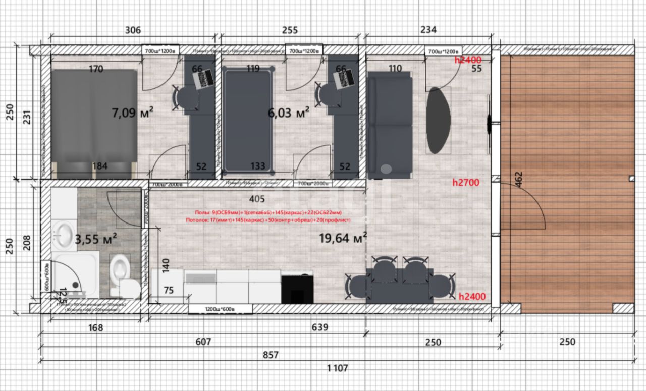Кухня-гостиная - 19,64 м2