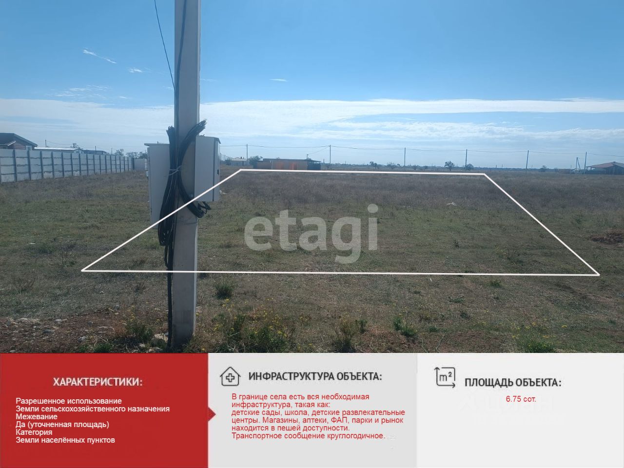 Продам перспективный земельный участок в селе Уютное, площадью 6.75 соток.