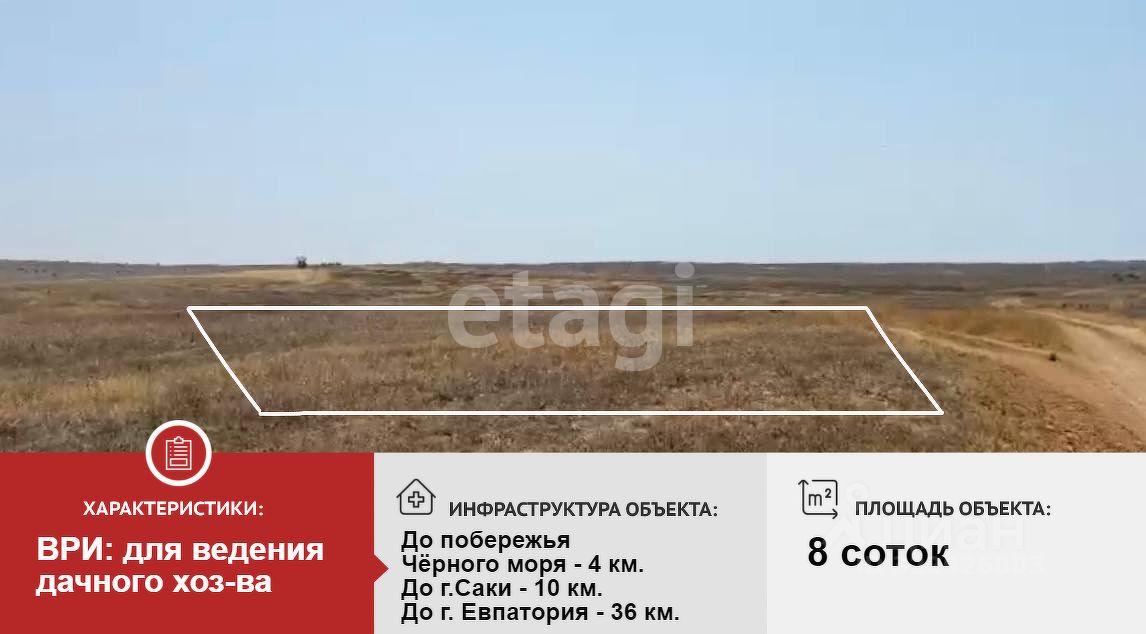 Продается участок земли в живописной местности Республики Крым, Сакский район, в 600 метрах на юго-запад от села Ивановка.