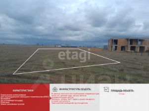 Участок имеет статус: индивидуальное жилищное строительство (ИЖС). На данном участке можно построить капитальное строение со статусом жилое. Участок ровной прямоугольной формы, не обработан. Электроснабжение, вода и газ проходят по улице.