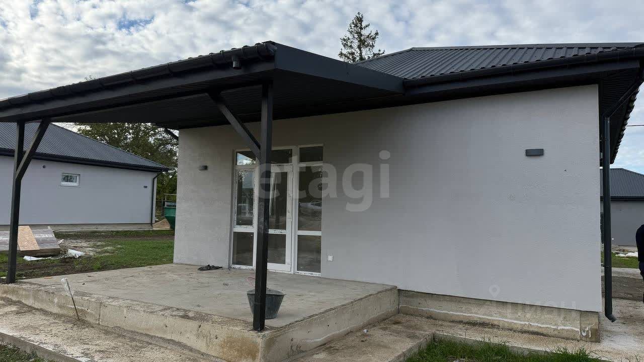 Дом утеплен, нанесена фактурная штукатурка короед, окрашен. Смонтирована водосточная система. По периметру дома широкие отмостки. Во дворе залита стяжка в зоне террасы и крыльца.