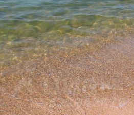 Побережье песчано-ракушечное, ровное, удивительно красивые виды на фоне гротов.