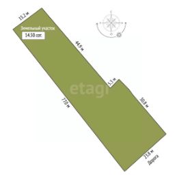 Площадь дома 52,2 кв. м., земельного участка 14,5 соток.