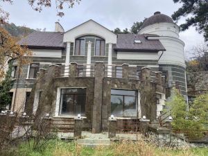 Жилой дом имеет площадь 799,9 кв. м., которые включают в себя множество комнат и шикарную террасу с видом на хвойный лес и море. Комнаты в доме просторные и светлые, полностью остекленные, на нижнем этаже расположена сауна и выход в гараж на несколько машин. Пол в доме выполнен из паркета светло-коричневого тона. Внешне архитектура дома соответствует классическому европейскому стилю.