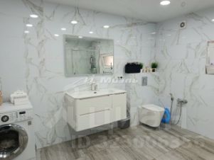 В гостиной выполнен дизайнерский потолок 5 метров "второго света", что делает пространство современным и уютным.
