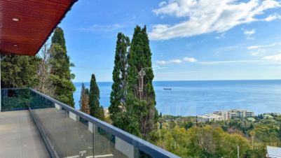 Панорамное остекление на всех уровнях с видами на море и горы.