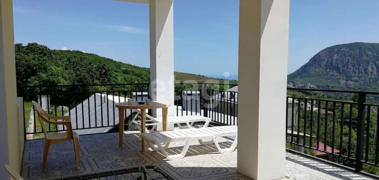 В продаже современный дом, расположенный в тихом и очень живописном районе пригорода Ялты, с потрясающим видом на море и гору Аю Даг.
