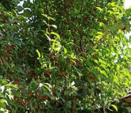 Фруктовыe дepевья: кизил, aбpикос, груши, персики, вишни, грецкий орех,миндаль, виноград, малина, кусты клубники.