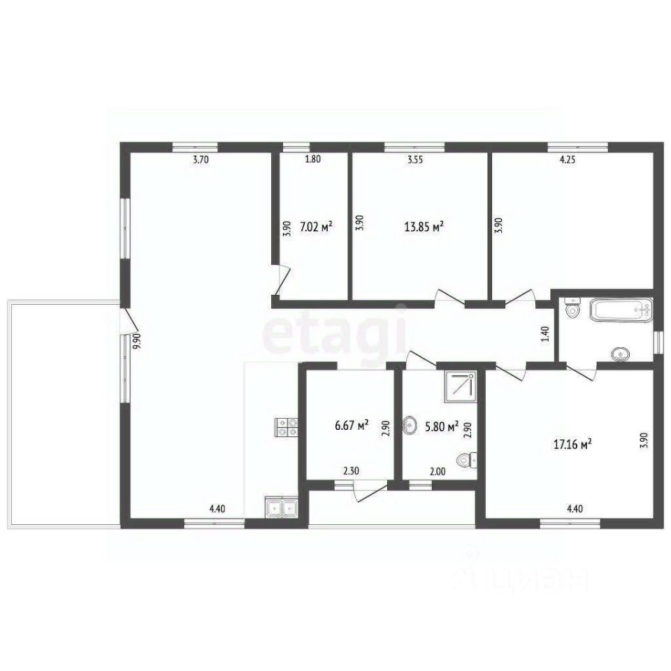 Дом площадью 130 м², его пространство включает три изолированные спальни, одна из которых выполнена в формате мастер-спальни, и объединенную гостиную с современной кухней-столовой, имеющую прямой выход на просторную террасу. Участок размером 5.5 соток предоставляет возможности для благоустройства и отдыха на свежем воздухе.