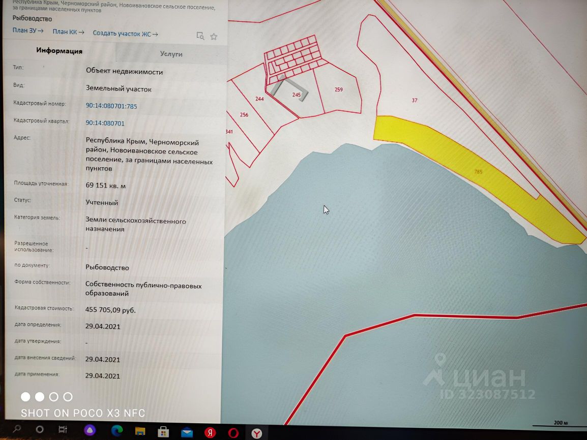 Продается Земельный участок на берегу озера Донузлав площадью 6.9 га под Рыбоводство . Данный вид разрешенного использования предусматривает возможность размещения на земельном участке капитальных и не капитальных зданий и сооружений, связанных с такой деятельностью например,слады , административные здания, цеховые постройки, домики рыбака, и т.д. На данный участок уже получен ГПЗУ что означает что этта земля сельскохозяйственной ПРОМЫШЛЕННОСТИ которую можно застраивать . Чтобы использовать данный участок в рекреационных целях,необходимо внести изменение в градостроительную документацию и в договор аренды.Первая линия судоходного озера Донузлав имеющего выход в Черное море. Категория земель - Земли сельскохозяйственного назначения. Аренда на 49 лет .Кадастровый номер 90:14:080701:785 . Оформлено на КФХ . Рядом проходит трасса Евпатория - Черноморск , рядом образовывается дачный кооператив, есть выход в отрытое Черное море