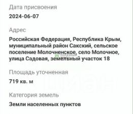 Купите участок в с.Молочное для строительства дома (ИЖС). Площадь участка 8 соток. Участок ровный, рядом можно приобрести смежный участок и увеличить площадь в два раза. Электричество вдоль участка, газ подведён, межевание произведено.