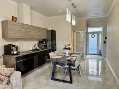 Объект отличается рациональной двухуровневой планировкой и выполнен с качественной отделкой. На первом этаже расположена просторная кухня-гостиная с собственным санузлом и прямым выходом на террасу, что создает идеальное пространство для приема гостей и повседневной жизни. Второй этаж отведен под приватную зону: здесь находятся две изолированные спальни, каждая с индивидуальной ванной комнатой. Одна из спален дополнена балконом и функциональной гардеробной кладовой. Высота потолков 3 метра создает ощущение простора и наполняет помещения светом. Отделка выполнена в актуальном стиле прованс с тщательно продуманными деталями, подобранной мебелью и декором, что обеспечивает комфортное проживание без необходимости дополнительных вложений.