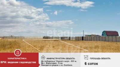 Продается земельный участок площадью 6 соток, предназначенный для ведения садоводства, расположенный в селе Молочное.