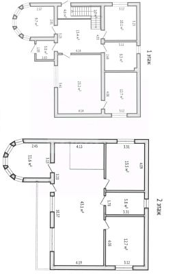 Второй этаж: разделен на одну однокомнатную квартиру и одну трёхкомнатную, в каждой из которых комната, кухня, санузел, бойлер, газовая плита.