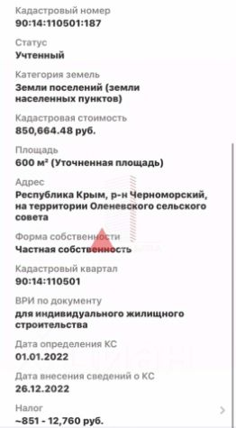 Продается великолепный участок в живописной селе Оленевка на Западном побережье Крыма, всего в 1 км от моря! Этот участок площадью 6 соток (кадастровый номер 90:14:110501:187) имеет правильную прямоугольную форму, что делает его идеальным для строительства вашего будущего дома мечты.