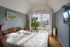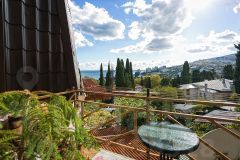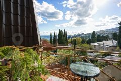 На втором этаже спальня с панорамным окном и балконом. С балкона открывается захватывающая дух панорама на морскую гладь и город.