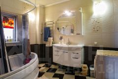 На первом этаже из прихожей с огромным вместительным зеркальным шкафом вы попадаете в просторную кухню-гостиную с большим, мягким диваном, который станет центром притяжения всей семьи. Также на первом этаже изолированная спальня и просторный санузел с огромной ванной.