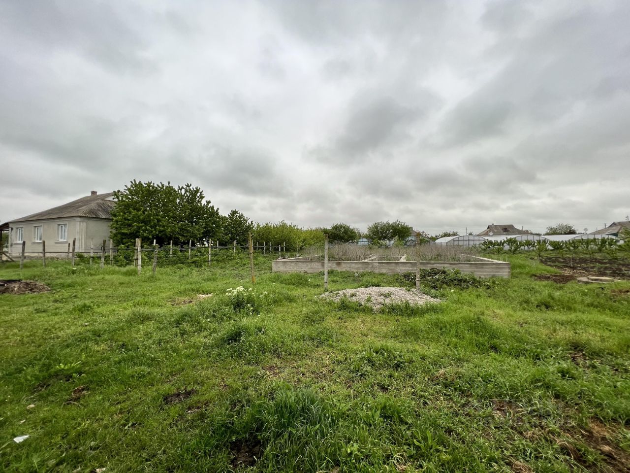 •	На задней части участка — садовые насаждения: черешня, яблоня
