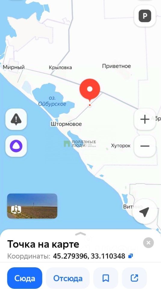 Продаётся земельный участок в с.Штормовое Сакский район - 6 соток. Категория земель: Земли сельскохозяйственного назначения. Разрешенное использование: ведение личного подсобного хозяйства на полевых участках. Участок ровный, находится ближе к дороге рядом есть Ойбурское солёное озеро, до моря 3,5 км. Собственник один. Документы РФ. Посреднические услуги 3% оплачивает Покупатель.