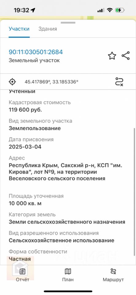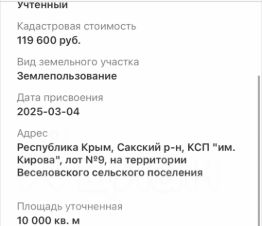 Продаётся земельный участок 1 Га в живописном районе Крыма — КСП им. Кирова, Сакский район.