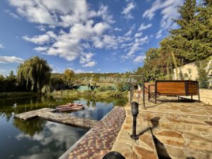 На территории домовладения расположены: помещение для охраны, гараж, уютная беседка, зона отдыха, пруд с рыбками, зона барбекю.