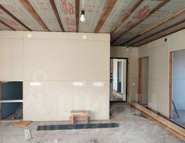 Стены в доме зашиты гипсокартоном, внутри стен минеральная вата, проведена проводка, установлены трех камерные металлопластиковые окна. Кухня гостиная 24 кв метра с выходом на террасу 14 метров, а также две спальни 10 и 9 кв метров. Прихожая 4 метра, просторный сан узел 6 метров, Кладовка.