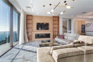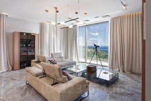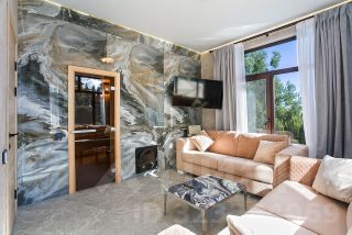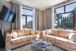 Основная вилла 335 кв.м., планировка виллы включает в себя: 4 мастер спальни с персональными гардеробными и сан узлами, кухня-столовая, гостиная, эксплуатируемая кровля с обзорными видами на море, побережье, горы, заповедник.