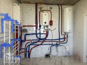 Котельная/топочная, в которой установлен электрокотел и газовый (управление по WI-FI) на горячую воду (дополнительно бойлер) и отопление с разводкой по всему дому, также распределительный электрощиток на два этажа (на 2-ом эт. дополнительно)