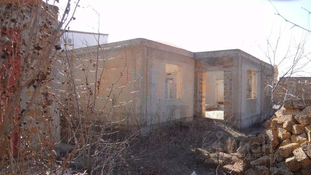 На территории, вдоль забора дальней стороны, на одной линии стоят недостроенный дом (коробка без крыши) и два капитальных гаража. Коммуникации заведены на участок.