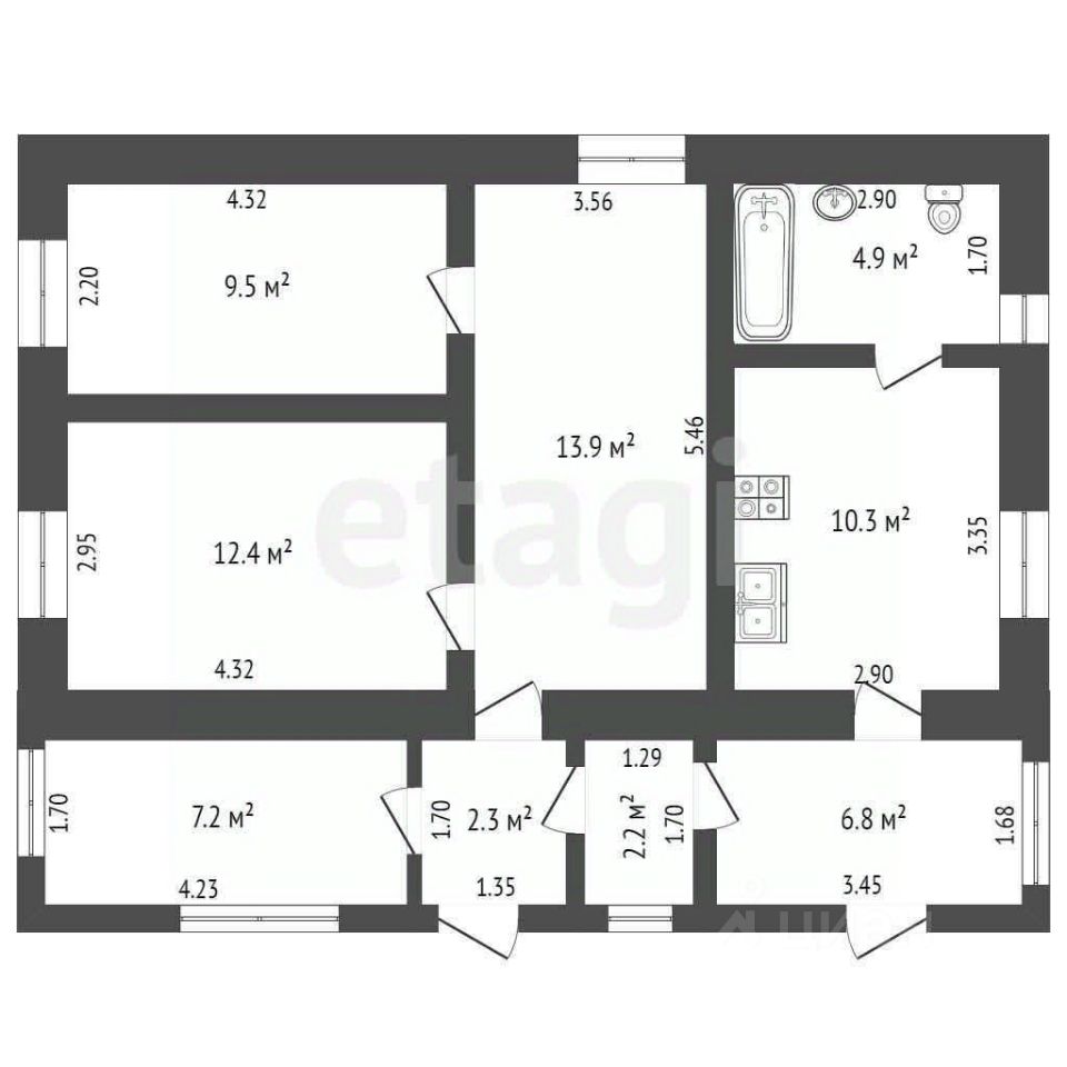 В доме большая кухня (сейчас частично сделан ремонт), есть совмещенный сан. узел с ванной комнатой. Коридор.