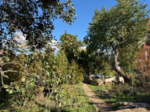 На участке расположены хвойные и плодовые деревья .