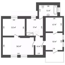 Ключевым преимуществом является полноценная коммуникационная инфраструктура: к дому подведены электричество, газ, центральное водоснабжение и газовое отопление, что позволяет комфортно проживать там в любое время года. Текущее состояние объекта предполагает проведение косметического или капитального ремонта, предоставляя новому владельцу возможность оформить пространство под личные предпочтения. На территории участка расположены хозяйственные постройки, а также сад и огород.