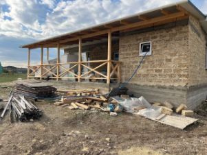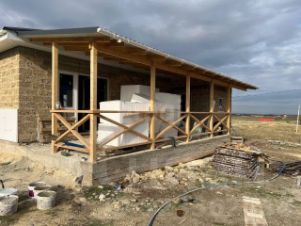 Дом выполнен из экологически чистых и долговечных натуральных материалов, включая природный камень, гарантирующих комфорт и безопасность жильцов.