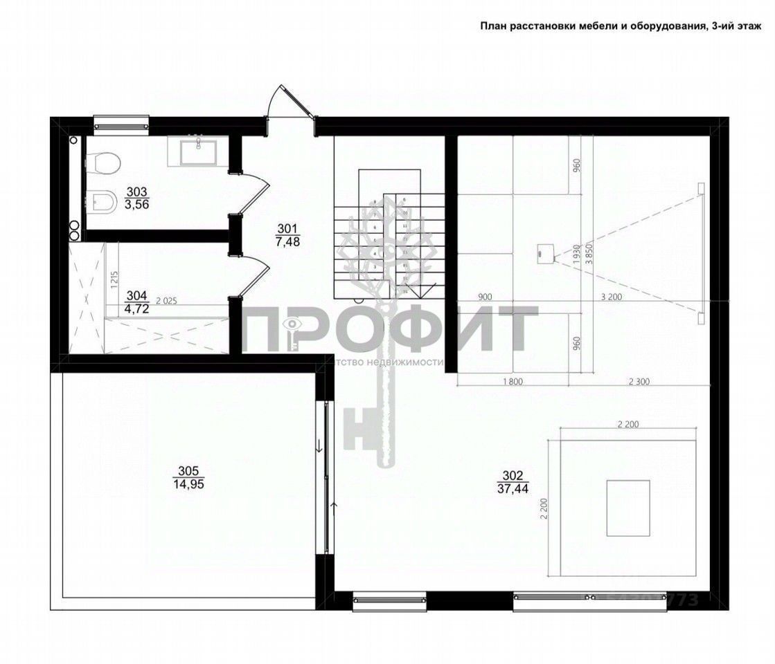 3 этаж: холл (7,48 м²), зона отдыха (37,44 м²), санузел (3,56 м²), кладовая (4,72 м²), видовая терраса (14,95 м²)