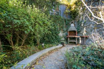 Территория дома закрыта каменным забором, и разбита на две зоны: первая зона- это центральный въезд, пост охраны и крытая парковка для автомобиля, вторая зона находится на задней части двора, на которой расположена уютная беседка и мангальная печь. Все пешеходные зоны и ступени вымощены декоративным камнем, спроектирован ландшафтный дизайн, высажены редкие породы деревьев (ливанские кедры в возрасте 170 лет), двор просто утопает в зелени кипарисов. Автоматический полив бережно следит за каждой травинкой, а ночное освещение придает особый шарм и позволяет комфортно себя чувствовать в любое время суток.