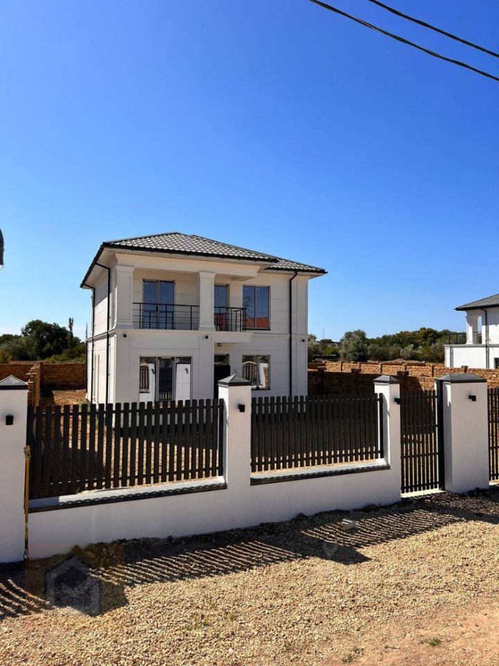 Продаётся дом новой постройки в пгт. Заозёрное, ул. Тенистая район Маяка, пригород Евпатории. Расположен на земельном участке 6 соток, ВРИ: ИЖС. Полностью огорожен капитальным забором. Дом двухэтажный, 2022г. постройки, высота потолков 3,1м, общей площадью 192,2 м2, 3 комнаты, жилая 39,4 м2, кухня-гостиная 30,4 м2, два с/у. Состояние без отделки. Разводка электричества и воды произведено. Коммуникации: электричество 15 кВт, вода центральная, газ проходит по улице, канализация септик. Фундамент плита, перегородки (ракушняк). Фасад утеплён. Крыша утеплена (толщиной 10см) металлочерепица. Окна трёхкамерные, фирмы REHAU. Установлено наружное освещение дома и территории участка. На территории участка есть бассейн. Отличный район, инфраструктура (магазины, рынок, школа, новый детский сад, амбулатория, отд. банка, паралимпийский центр Эволюция (спортивные сооружения, парковая территория; детские игровые площадки; школа серфинга (летом); экскурсионные программы; анимация для детей; зал для игр в бильярд; паркинг на территории; лечебное отделение; собственный пляж; киноконцертный зал). Городская транспортная развязка. Дом расположен в 6км от города, и 550м от моря. Документы РФ, на землю и строение.