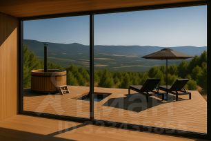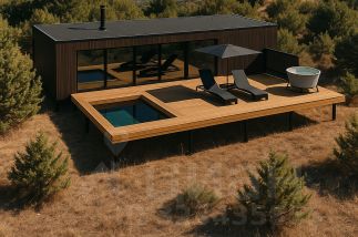 • Модульный дом с панорамным остеклением и верандой с чаном;