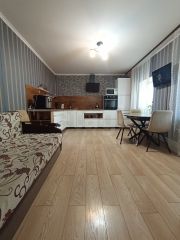 На первом этаже Вас ждут современная кухня-гостиная и уютная спальня, прихожая, совмещённый санузел. На втором мансардном этаже — просторная спальня, а также проходная комната с выходом на балкон и двумя кладовыми. Все комнаты светлые и уютные, с качественным евроремонтом. При продаже в доме остаётся кухонный гарнитур, частично мебель и техника.