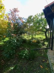 Придомовая территория благоустроена: высажены плодовые, фруктовые и декоративные деревья и кустарники, виноград, голубая ель, цветы. Участок огорожен. Удобное место для парковки автомобиля — навес с шумоизоляционным профнастилом. Есть место для организации зоны отдыха. Имеется сарай с водоснабжением и обогревом для разведения домашней птицы.