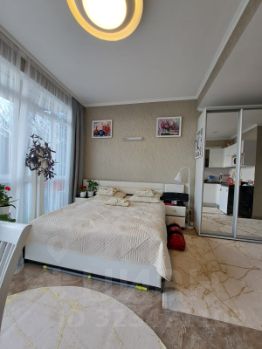 3 этаж - большая студия (кухня-гостиная, спальня), санузел, балкон с видом на море.