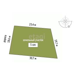 Участок характеризуется ровным рельефом с незначительным уклоном в сторону озера, что открывает приятный природный вид и предоставляет дополнительные возможности для ландшафтного дизайна.