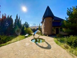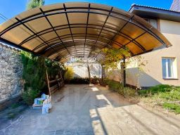 Продам дом 342 кв, на участке 8 соток. Коктебель. Материал стен: построен из Архангельской сосны, 22 см диаметр. Косметический ремонт сделан в 2021 г. Гостевой дом 60 кв, капитальный, с отоплением. Газон с системой автоматического полива. Коммуникации: электричество, городская вода, септик, газ. Сад: сосны, кипарисы, можжевельник.