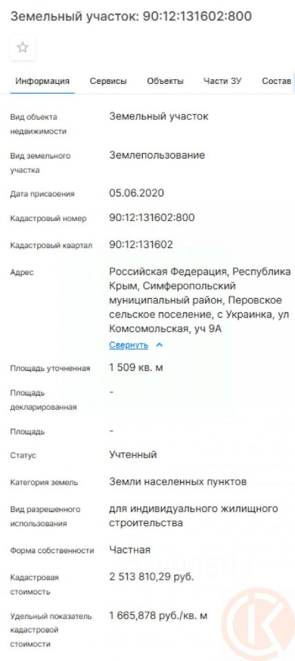 Водоснабжение колодец (требует расчистки). На участке небольшой уклон. Хорошая земля все зеленое. Есть деревья. Присвоен адрес. Кадастровый номер участка 90:12:131602:800