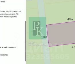 Участок 9,4 сотки (СТ) расположен в Респ. Крым, Белогорский р-н, п. Зуя, ПК Садовое товарищество Оптимист". Участок ровный, с соотношением сторон 20*48*20*47 м. Подъезд по грунтовой дороге.