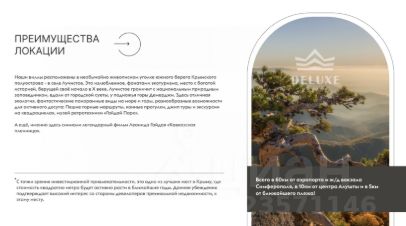 Из панорамных окон открываются захватывающие виды на море, гору Демерджи и виноградники, а чистейший горный воздух создаёт атмосферу абсолютного покоя.