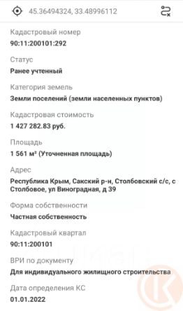 К продаже предлагается земельный участок 15 сот в самом инфраструктурном развитом селе Крыма - Столбовом. Село-победитель конкурса Лучшее сельское поселение Республики Крым. На участке имеется сарай 200 кв м, участок огорожен забором. Газ, свет, вода по границе участка.