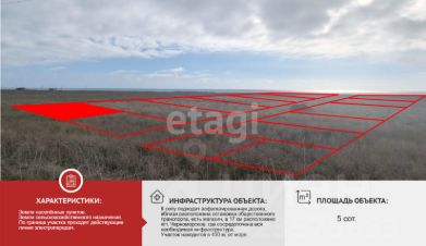 Продаётся земельный участок площадью 5 соток в селе Марьино, Окунёвского сельского поселения, Черноморского района . Участок относится к землям населённых пунктов, к категории сельскохозяйственного назначения.