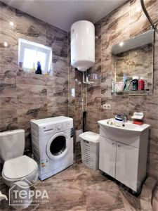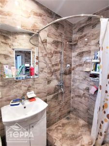 На 1,2-м этажах стены отделаны фактурной штукатуркой и обоями. Немецкие м/п окна и фурнитура. На полах постелен ламинат, санузел в плитке. В дом заведено 15кВт, есть переливной септик, централизованная вода, можно подключить газ. Все квартиры укомплектованы кондиционерами, новой мебелью и техникой!