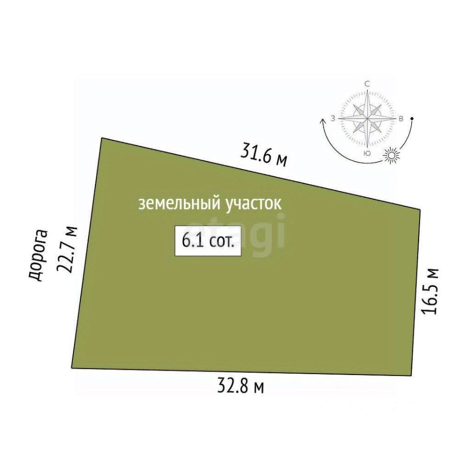 Общая площадь - 6,13 соток. Это ровный и сухой земельный участок, формы неправильной трапеции 19,7*30*15*30м.